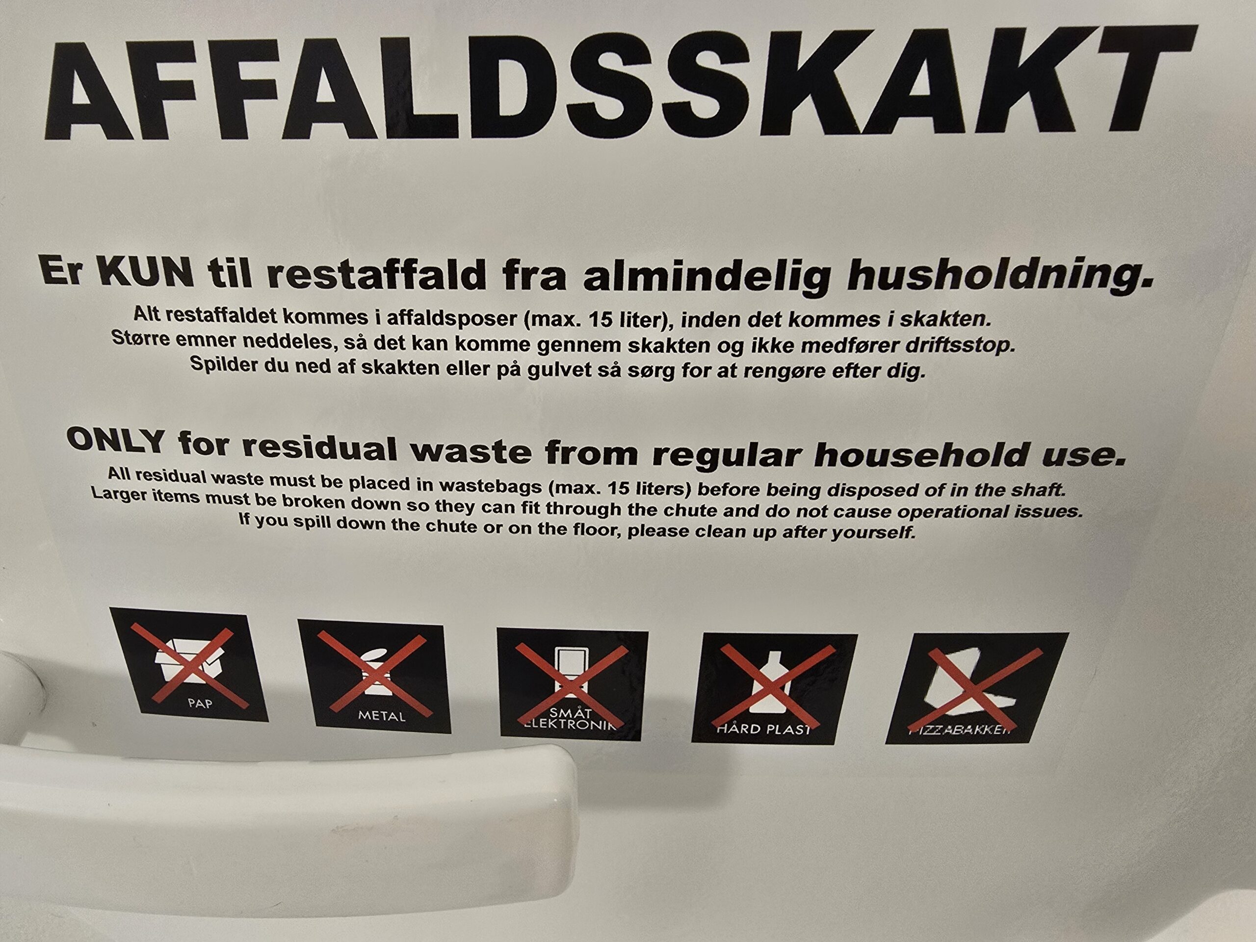 - Tilstoppede affaldsskakte, som skaber gener for alle, da der går tid, før man kan benytte affaldsskakten igen efter reparation