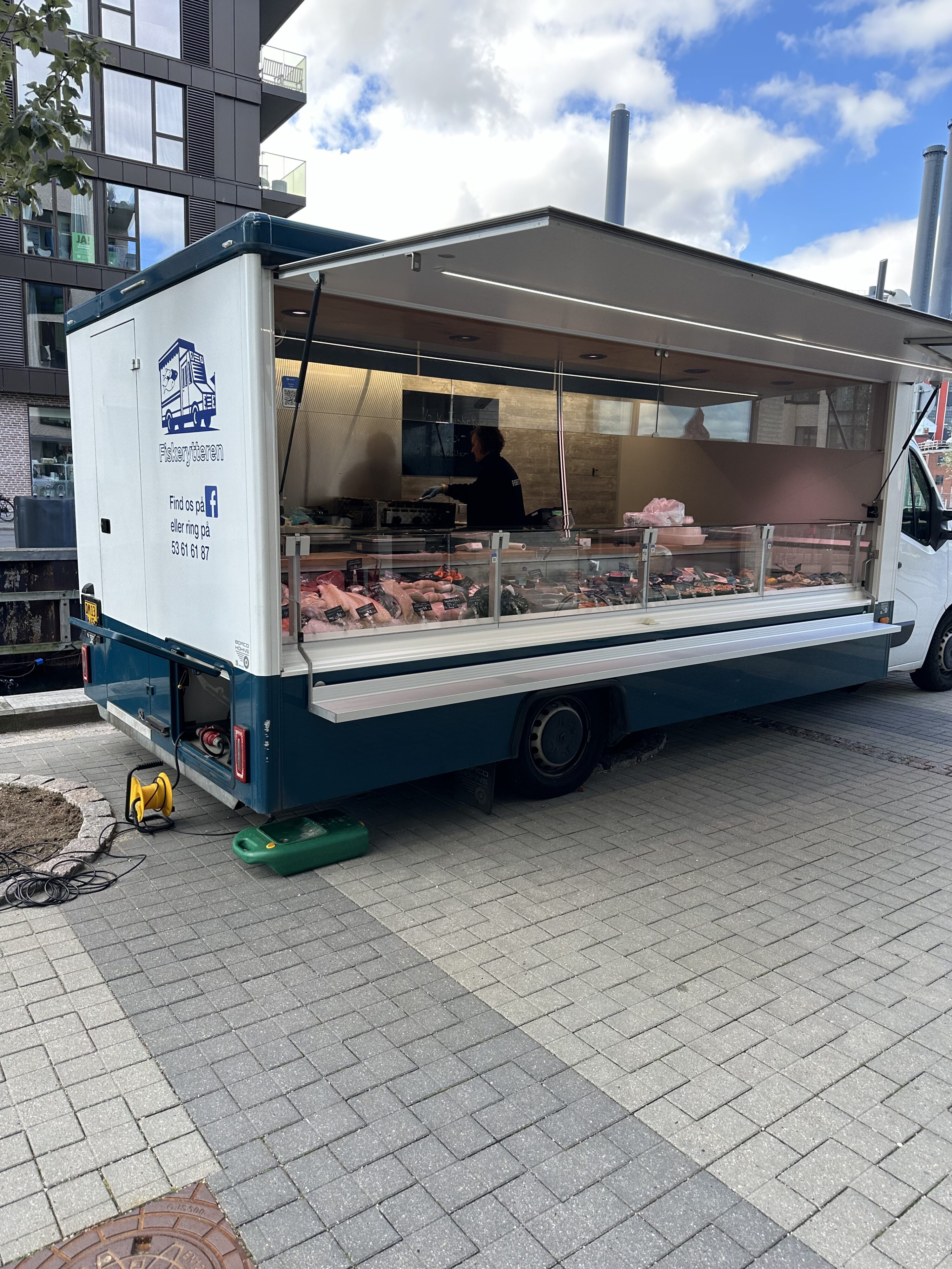 Så er der fiskebil på Myrholm. Den holder foran Willys Marked. Virkelig lækker fisk