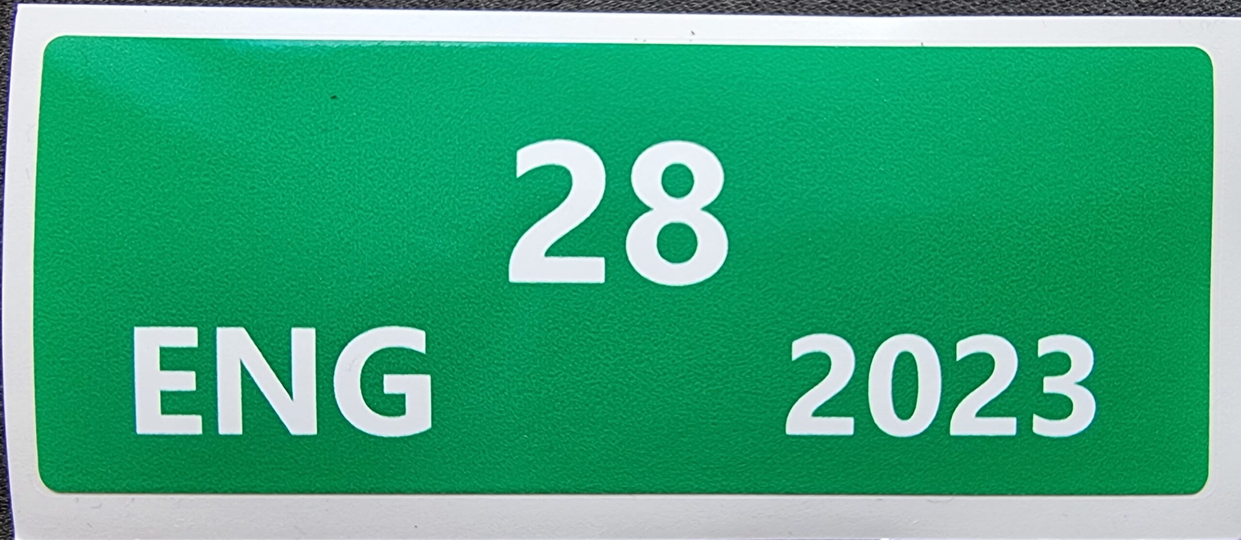 By & Havn har vandlejekontrakten med Enghave Brygge grundejerforening, som administrer bådplads-vandlejen for Myrholm. Bådene, som ligger på de aktive lejers pladser, skal have en mærkat/klistermærke siddende. Se eksemplet lige herunder. 28 er skilt nummer (Bare fortløbende), ENG betyder Engholmene og 2023 er året, som skiltet gælder. Vi får altså et nyt klistermærke til næste år og du får ikke nødvendigvis det samme nummer.