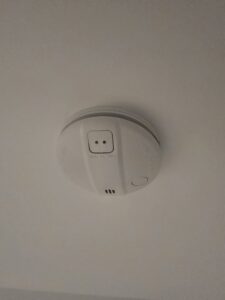 Der er monteret en brand-alarm i loftet i din entré eller i en gang. Denne er batteri-drevet og vil beepe, når batteriet er ved at være dødt. Du opfordres til at montere røgalarmer i alle lokaler, hvor man sover, således at man i tilfælde af brand advares så hurtigt som muligt.